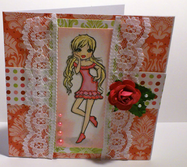 Dessa papper fick jag från en kompis när jag fylde år! Jag har använt dessa papper rätt mycket i somras. Jag hade en del kvar och var bara tvungen att göra lite mer kort av dem. Papperena är fårn Panduro märket Tilda. Det är i block man får köpa dem. Finns också i blå nyanser. Tycker de är väldigt fina! Såg också att det har tyger som ser likadant ut. Gick in på google och sökte på fairy, cute girl, lineart girl, neko girl, och lite annat och hittade en massa fina bilder. Är kvalitet inte så bra så ändra bara bildpunkterna. Det är bra om det är minst 300 bild punkter annars blir inte utskriften bra. Vanliga bilder brukar ligga på ca 75 bildpunkter annars. En av dessa är digitalstämpel och en av dem är en digitalstämpel ajg ritat själv. Resten av bilderna har jag hittat på google och färglagt med promarker. Hittade också ett par jättefina motiv som jag inte sparade på denna dator men jag ska visa er senare.